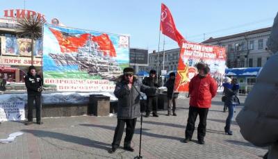 На митинге также выступил полковник запаса, первый секретарь Ленинского РК КПРФ, Председатель регионального отделения «Союза советских офицеров» А.А. Карасев.