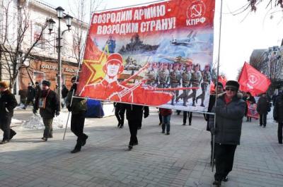 23 февраля, не смотря на сильный мороз, в г. Саратове, а также в Балаково, Балашове, Марксе, Пугачеве и в большинстве райцентров области состоялись шествия, митинги и пикеты, посвященные 96-й годовщине основания Советской Армии и Военно-Морского Флота, организованные местными отделениями КПРФ, в рамках Всероссийской акции протеста в поддержку армии, против порочной военной реформы, подрывающей кадровый потенциал и боеспособность Вооружённых Сил.