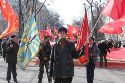 К Вечному огню на Площади павших героев был установлен венок с надписью: «Защитникам Отечества – от советских офицеров и коммунистов». После этого состоялся митинг, открывшийся исполнением гимна Советского Союза.
