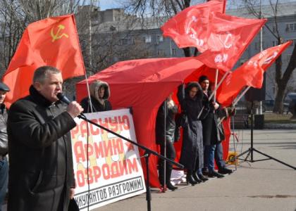23 февраля – в знаменательный день нашей истории - жители донской столицы, несмотря на пронизывающие штормовые порывы ветра, собрались на площади Ленина, у памятника великому вождю, чтобы отметить митингом, организованным Ростовским обкомом КПРФ, 96-ю годовщину создания Красной Армии и Военно-морского флота.