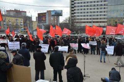 В выступлениях многих участников акции, проходившей на фоне государственного переворота на Украине при предательской позиции президента Януковича и попустительстве российских властей, звучала тема этих трагических событий. Как подчеркнул, обращаясь к собравшимся, лидер коммунистов Дона Николай Коломейцев, оценивая ситуацию, сложившуюся в связи с драматическими событиями в братской республике, граница с которой проходит в нескольких десятках километров от Ростова - беда уже возле нашего порога.
