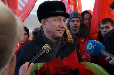 27 февраля на железнодорожном вокзале в Нижнем Новгороде делегацию ЦК КПРФ хлебом и солью встречали местные коммунисты и комсомольцы во главе с первым секретарем Нижегородского обкома КПРФ, депутатом Госдумы Н.Ф. Рябовым.