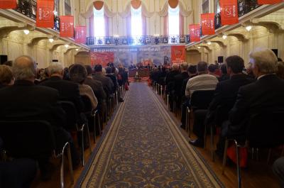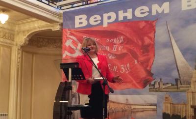 На открытии прозвучал гимн СССР. Открыл форум заместитель Председателя ЦК КПРФ В.Ф. Рашкин с докладом «Парламентская борьба – одна из форм претворения в жизнь программы КПРФ».