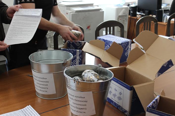 После завершения митинга его участники попытались оставить в приемной главы региона собранные «пожертвования» - два ведра мелочи достоинством от одной копейки до десяти рублей. Однако из-за того, что никого из чиновников не было на месте, деньги губернатору было решено отправить по почте.