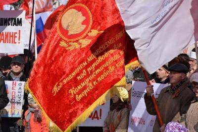 Коммунисты пришли на митинг со знаменами СССР, КПРФ и копией Знамени Победы и развернули плакаты: «Украина. Да – поддержке, нет – войне», «Нет фашизму в Украине и в России», «Долой нелегитимную власть», «Нет бандитским переворотам», «Власть народу, а не криминалу».