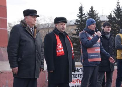 Со словами осуждения фашистов и поддержки страдающих от них братьев-украинцев и русскоязычного населения выступили первый секретарь крайкома партии, депутат фракции КПРФ Законодательного собрания Петр Медведев, председатель правления региональной организации Всероссийского созидательного движения «Русский Лад» Владимир Бедарев, первый секретарь горкома комсомола Даниил Гребёнкин, руководитель спортивного клуба «Беркут» Дмитрий Масленников, первый секретарь Железногорского горкома комсомола Иван Мартынов, учащаяся лицея № 68 Дарья Андрианова, председатель городского отделения организации «Дети войны» Светослав Савицкий, руководитель Ленинского райкома КПРФ Борис Телеш, первый секретарь Абаканского горкома комсомола Григорий Куликов, представитель партии «Великое Отечество» Алексей Алейников. Ораторы выразили солидарность с гражданами Крыма, которые на референдуме выразят волю быть в составе России.
