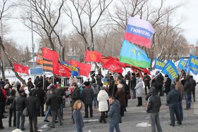 Накануне референдума о независимости Крыма, 15 марта 2014 года, тюменские коммунисты организовали и провели митинг в защиту русскоязычного населения на Украине. В митинге приняли участие активисты ЛДПР, других общественно-политических объединений, рабочая молодёжь и просто неравнодушные граждане. В общей сложности на площадь сквера Комсомольский вышло порядка 200 человек.