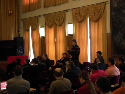 Далее выступление руководителя избирательными кампаниями партии развивали специалисты Отдела ЦК КПРФ по информационно-аналитической работе и проведению выборных кампаний. Перед кандидатами выступили эксперты С.Н.Андриянов и И.И.Еремейцев, который в развернутом виде представили слушателям презентацию и методические материалы «Рекомендации по организации выборов депутатов Мосгордумы шестого созыва 14 сентября 2014 года в одномандатном избирательном округе».