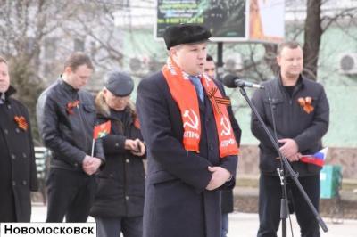 Тула. Красные флаги СССР и КПРФ развевались в субботу, 16 апреля, на площади Победы, где в конце октября 1941 года было остановлено наступление немцев. Там, на южной окраине Тулы совершил свой подвиг командир батареи зенитных орудий лейтенант Григорий Волнянский, уроженец Сумской области Украины. Ценой своей жизни он подавил продвижение немецких танков на город оружейников. О неразрывных корнях братских народов, разгуле бандеровской нечисти, невиданном социальном расслоении на Украине говорил в своём выступлении второй секретарь обкома КПРФ, депутат Государственной Думы Олег Лебедев: