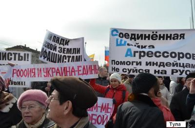 По городам Тульской области прокатилась волна митингов в связи с событиями на Украине. Их общий лейтмотив: «Своих не бросаем!», «Крым – это Россия», «НЕТ разгулу фашизма!» В этих акциях самое активное участие приняли активисты местных отделений КПРФ.