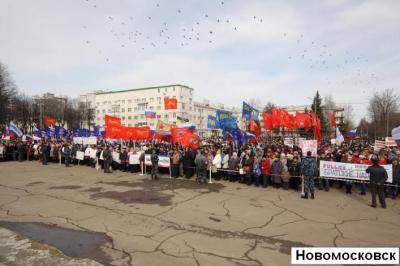 Новомосковск. «Своих не бросаем!», «Поддержим Крым!», «Фашизм не пройдет!», «Пока мы едины – мы непобедимы!», «Крым, Россия с тобой!» - с такими лозунгами вышли сегодня на городскую площадь сотни новомосковцев, чтобы выразить свою обеспокоенность последними событиями на Украине и единодушно поддержали соотечественников.