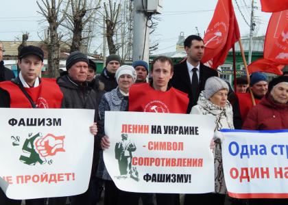 На акцию коммунисты вышли с плакатами: «Крым, коммунисты Барнаула с тобой!», «Остановим фашизм на братской Украине!», «Фашизм не пройдет!», «Ленин на Украине – символ сопротивления фашизму!».