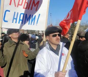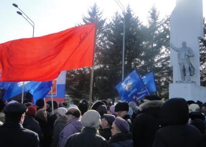 В пяти городах Приамурья 19 марта состоялись массовые акции в поддержку русскоязычных украинцев на Украине. В крупнейших населенных пунктах области на улицы с транспарантами и флагами вышли и Амурские коммунисты.