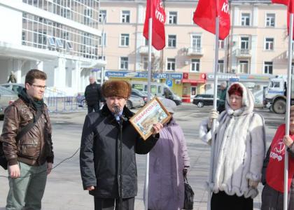 На митинге выступил первый секретарь Тюменского обкома РКРП Александр Черепанов, который сказал о том, что Россия должна ввести санкции по отношению к Америке и Евросоюзу. Пора уже давно развивать свою промышленность и выйти из состава ВТО.