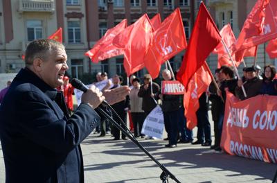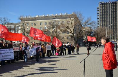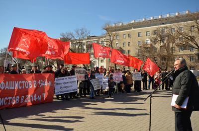 Ростов-на-Дону, 22 марта. В рамках организованной КПРФ Всероссийской акции в поддержку народа Крыма, воссоединения Крыма и России, против преследования сторонников дружбы и союза с Россией нелегитимными бандеровскими властями нью-Украины ростовские коммунисты провели митинг, посвящённый итогам референдума в Крыму, защите русскоязычного населения на Украине под лозунгом «Нет — фашизму!». Поддержать ростовчан, собравшихся на Театральной площади донской столицы, приехали жители городов области – Новочеркасска, Сальска, Батайска, Таганрога, Новошахтинска, Усть-Донецка, Красносулинского и Неклиновского районов.