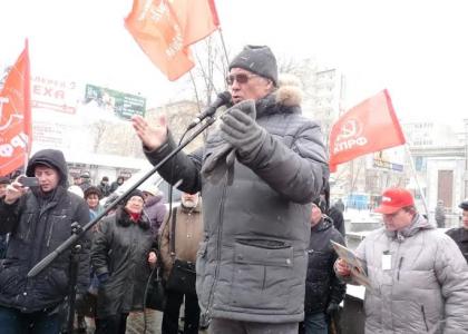 Манифестанты приняли резолюцию, в которой выражается протест против, творимого властью криминального беспредела, в отношении кандидата от КПРФ А.Е. Локтя на выборах мэра Новосибирска.
