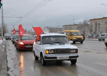 Митинг проходил у подножия Мамаева кургана, куда из 20 районов Волгограда и области прибыли колонны машин. Всего 60 автомобилей районных отделений с флагами КПРФ проехали по улицам города.