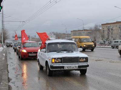 Митинг проходил у подножия Мамаева кургана, куда из 20 районов Волгограда и области прибыли колонны машин. Всего 60 автомобилей районных отделений с флагами КПРФ проехали по улицам города.