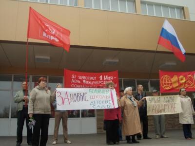 Под музыку духового оркестра, колонна демонстрантов прошла по центральной площади города. Митинг открылся под Гимн России.