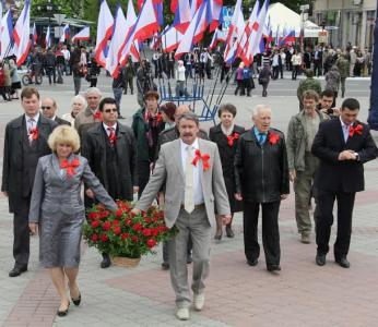 Затем коммунисты и их сторонники праздничной колонной прошлись по центральным улицам г.Симферополя.
