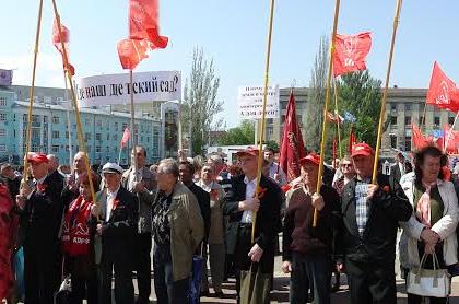 Участники демонстрации в честь Международного дня солидарности трудящихся 1 – Мая, собрались, чтобы выразить свою трудовую, пролетарскую солидарность со всеми, кто борется за мир, труд, свободу, равенство, братство всех народов. За возврат власти трудовому народу.