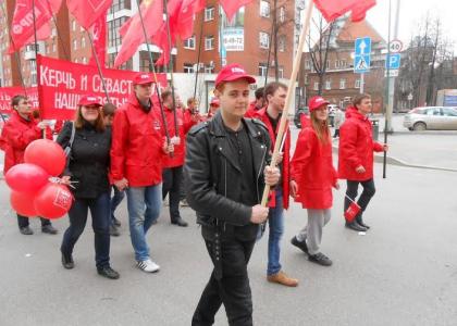 Под красными флагами КПРФ, Советского Союза, Ленинского комсомола и Знамёнами Победы на Первомайскую демонстрацию вышла колонна КПРФ. Шли в колонне пионеры и ветераны, коммунисты и комсомольцы районов Перми, Пермского края и гости города.