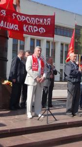 С первомайским поздравлением к участникам митинга обратился секретарь Калужского обкома КПРФ по идеологии, депутат Законодательного Собрания В.Н.Барский.