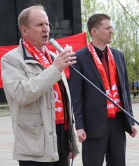 К собравшимся обратился член ЦК КПРФ, Первый секретарь Ивановского обкома партии, руководитель фракции КПРФ в Ивановской областной Думе В.В.Клёнов. Он особенно подчеркнул роль солидарности трудящихся для достижения успеха в борьбе против власти олигархов.