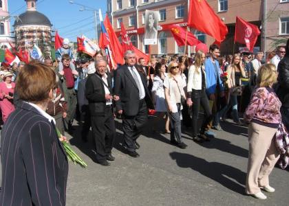 Под лозунгом «Коммунистическая партия – вдохновитель и организатор Великой Победы!» 9 мая коммунисты Калуги прошли колонной с алыми стягами и знаменами под военные марши духового оркестра в праздничном шествии граждан по центральным улицам города. В демонстрации и митинге приняли участие калужские коммунисты, ветераны Великой Отечественной войны, труженики тыла, ветераны Вооружённых Сил России, Ленинский коммунистический союз молодёжи совместно с движением «В поддержку армии», РУСО, «Всероссийским женским союзом – Надежда России», общественной организацией «Дети войны», Советом рабочих и служащих города, другими патриотическими организациями. Колонна под красными знаменами, с портретами Ленина, Сталина и полководцев Победы начала движение от сквера Мира. Впереди – Знамя Победы. Возглавляют колонну ветераны Великой Отечественной войны.