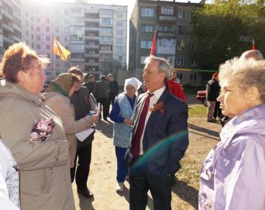 Накануне Дня Победы, вечером 7 мая коммунисты Индустриального района Барнаула организовали еще одну встречу жителей города с депутатом Госдумы Сергеем Юрченко, в ней также принял участие депутат АКЗС Николай Наздрачев. Во дворе многоэтажек, неподалеку от магазина "АЯС", на детской площадке собралось около 40 коммунистов и более 20 жителей микрорайона.