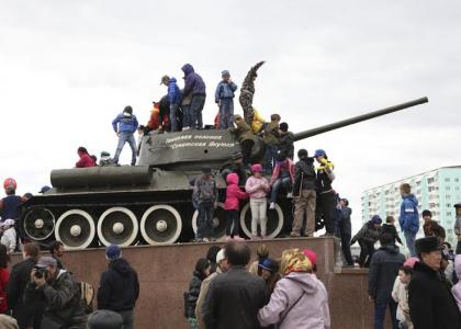 После митинга на площади Победы люди еще долго не расходились и кружились в танце под советские песни…