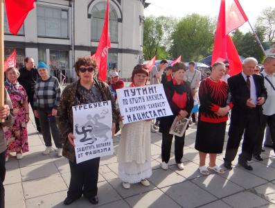 Наш коммунистический лидер Ольга Николаевна Алимова обратилась не только к тем, кто целенаправленно пришел на митинг, но и к тем сотням человек, кто торговал у Крытого рынка, кто спешил по своим делам и проходил мимо: «Несколько дней назад отгремели залпы салютов в честь 69-й годовщины Победы над фашистской Германией. Но наши чувства радости и гордости победных майских дней быстро сменились на чувство горести и тревоги за украинцев, чей вклад в победу Советского народа под Красным Знаменем был велик! Когда я смотрю на события в Украине, разные чувства меня одолевают: тревога, беспокойство, негодование, ненависть… и удивление. Думаю, кому же это все нужно? Кто за этим стоит? Понятно, что мы здесь в России многого не знаем, нам не все показывают. Российские телеканалы убеждают, что все русскоязычные украинцы хотят перейти жить к нам, в Россию, а украинские - вещают, что «москали» пытаются навязать Украине свою волю. Как понять, где она, правда?