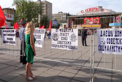 В минувшее воскресенье в Донецкой и Луганской областях прошли победные референдумы за отделение их от Украины. Власти ЕС и Украины результаты референдума не признали. На родной для России украинской земле продолжаются локальные боевые столкновения, проливается кровь простых граждан. В поддержку украинцев в их борьбе против наступающего фашизма выступили региональное отделение КПРФ вместе с Саратовским горкомом партии. 12 мая на площади у цирка прошел коммунистический митинг-экспромт.