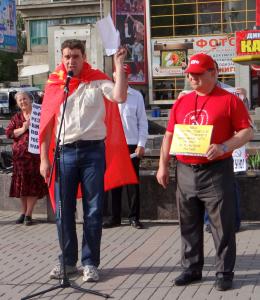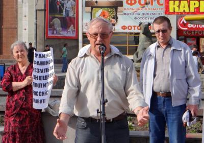 Карасев Андрей Андреевич, депутат городской думы, секретарь Ленинского РК КПРФ выступал не только как офицер, как коммунист, но и как русский украинец: «Почему 90-94 процентов жителей Луганщины и Донецкой области проголосовали за свою независимость? Да потому, что им надоело жить в таком беспределе, когда их судьбы вершат два олигарха, два нечеловеческих выродка. Но почему наша российская власть препятствует проведению любого референдума? Ведь по Конституции РФ население имеет права на выражение своего мнения по любому вопросу. Все акции протеста, в том числе и референдум, мы, коммунисты, проводим для того, чтобы заставить власть шевелиться». Андрей Карасев предложил внести в резолюцию митинга пункт: «Депутатам Государственной думы, Совету Федерации, правительству принять «Закон о референдуме», чтобы население могло высказать свое мнение по социально-экономическим вопросам развития страны. «И не надо этого бояться, - добавил он, - всем известно, что здание стоит прочно только тогда, когда у него хороший фундамент».