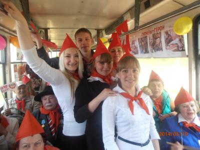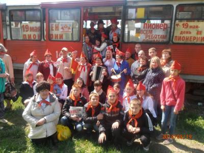 Празднично оформленный, экипированный пионерской атрибутикой, флагами, растяжками трамвай двигался по маршруту № 3-a. Организаторы акции: коммунисты, комсомольцы и отделение Всероссийского женсоюза «Надежда России». Посетителей трамвая активисты партии и женского союза поздравляли с праздником, информировали об истории Пионерии в России, о героях-пионерах, пели песни, частушки, раздавали флажки с надписью «Я люблю СССР», партийные газеты и листовки.