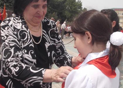 Ветераны труда, партии, депутаты-коммунисты, комсомольцы, секретари райкомов повязали школьникам красные галстуки. Теперь для юных пионеров приобретут особый смысл слова из стихотворения Степана Щипачева «Пионерский галстук»: