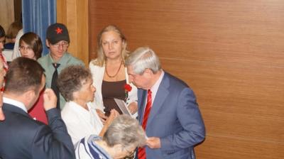 После концерта началась встреча Ивана Мельникова с пензенскими коммунистами и сторонниками. Иван Иванович вручил партийный и комсомольские билеты наиболее активным сторонникам компартии, а также наградил коммунистов за отличную работу.