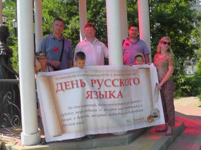 Далее участники «часа просвещения» поздравляли жителей с государственным праздником - Днём русского языка, напоминая горожанам слова И.С.Тургенева о русском языке.