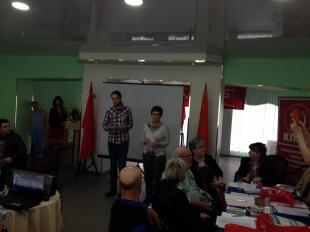 Состоялось традиционное представление делегаций. Это сделали руководители делегаций: представитель руководства Компартии Финляндии – Tapio Siirilä, главный редактор газеты коммунистов Норвегии - Harald Repesgaard, заместитель председателя Законодательного Собрания республики Карелия, член фракции КПРФ С.В. Логинова, первый секретарь Ленинградского областного отделения КПРФ Р.А. Илларионова, лидер архангельских коммунистов, руководитель фракции КПРФ в Законодательном собрании Архангельской области А.В. Новиков, руководитель Вологодской делегации А.В. Буров.