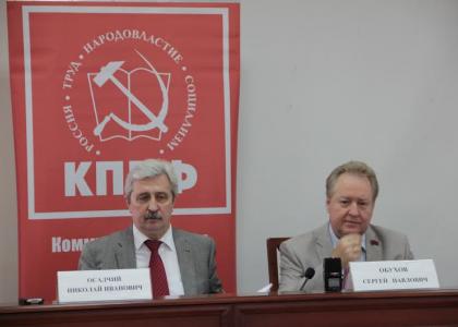 В пресс-конференции приняли участие: депутат Государственной Думы, член Президиума, секретарь ЦК КПРФ С.П.Обухов, руководитель фракции КПРФ краевого парламента, член ЦК КПРФ, первый секретарь крайкома партии Н.И.Осадчий, депутаты Законодательного Собрания края – член ЦК КПРФ, секретарь краевого Комитета партии П.В.Соколенко и член Президиума ЦКРК КПРФ, первый секретарь Краснодарского горкома КПРФ С.К.Лузинов.