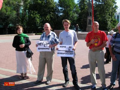 8 июля Тамбовский обком КПРФ провел пикет в поддержку жителей Донецкой и Луганской народных республик. Пикетирующие вышли на улицу Советскую с плакатами: «Защитив Новороссию, защитим Россию», «КПРФ – за признание Новороссии!», «Русские не сдаются!», «Фашизм не пройдет!», «Нет фашизму!», «Слава бойцам сопротивления!», «Защитим братство наших народов!», «Хунта! Убери свои кровавые щупальца от Донецка и Луганска!», «Выход из кризиса и войны – социализм!».