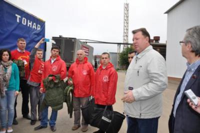 Автоколонну помощи провожали: заместитель председателя ЦК КПРФ, председатель Комитета по природным ресурсам, природопользованию и экологии Госдумы, академик РАСХН Владимир Кашин, депутаты Государственной Думы Казбек Тайсаев и Владимир Родин, первый секретарь МК КПРФ, депутат Государственной Думы ФС РФ Николай Васильев, второй секретарь МК КПРФ, зам. председателя Московской областной Думы, руководитель фракции КПРФ в МОД Константин Черемисов, секретарь МК КПРФ, председатель Комитета по местному самоуправлению МОД Александр Наумов, директор ЗАО «Совхоз им. В.И. Ленина» Павел Грудинин, коммунисты МГК КПРФ, районных и городских отделений, товарищи из Луганской народной республики.