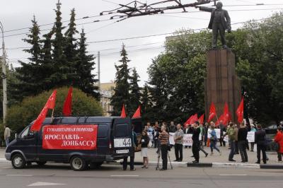 Перед участниками митинга выступили секретарь Ярославского ОК КПРФ, депутат областной Думы Эльхан Мардалиев, который по окончании митинга уехал на партийной газели с грузом в г.Ростов на Дону. Коммунистами и активистами организации «Дети войны» было собрано около 140 тыс. руб в помощь жителям Донбасса. На эти деньги были заказаны медикаменты, необходимые раненым в полевых условиях. Консультацию и помощь в этих вопросах оказали военные медики.