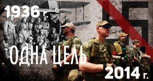 Также как и в далеком 1936 году в Испании, в 2014 в Киеве украинские фашисты, не сумев прийти к власти законным путем, свергли правительство и пытаются установить над страной свою диктатуру.