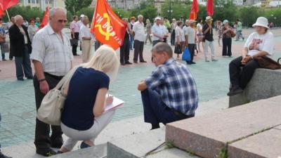 15 июля на площади им. В.И. Ленина Читы в рамках общекраевой протестной акции краевое отделение КПРФ провело митинг в поддержку юго-восточных регионов Украины, за признание Донецкой и Луганской народных республик, за сплочение всех народно-патриотических сил России, против диктатуры националистических сил объединившихся на идеях Степана Бандеры.