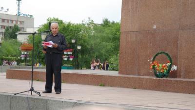 Митинг открылся минутой молчания в память о погибших. Основной мыслью выступающих было требование официально признать Союзные государства ДНР и ЛНР, организовать военную и дипломатическую помощь народным Республикам. Депутат Законодательного собрания края Сергей Сутурин (фракция КПРФ) отметил: «КПРФ продолжает активно поддерживать население Крыма, Донецкой и Луганской республик. Фашиствующие элементы совершили на Украине государственный переворот, развязали гражданскую войну против юго-востока страны, который не желает воспринимать власть крупного капитала и антироссийскую пропаганду. У хунты далеко идущие планы, ее представители заявляют, что силой вернут Крым и присоединят к Украине не только объявившие о независимости от киевского руководства республики, но и Ростовскую и Воронежскую области. На границах с Россией нарастает напряженности и в этой ситуации мы должны быть солидарны с ополчением».