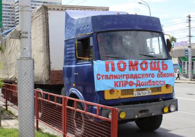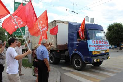 21 июля из Волгограда отправилась первая машина с гуманитарным грузом для помощи жителям юго-восточных регионов Украины. Организатором акции выступило Сталинградское областное отделение КПРФ.