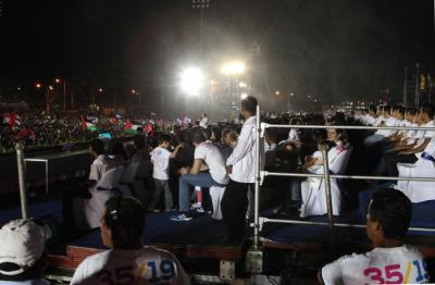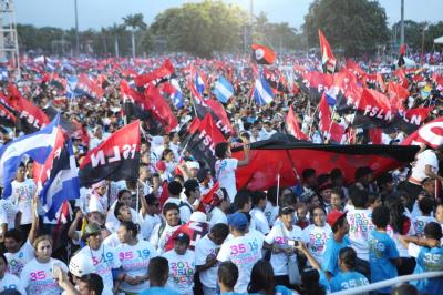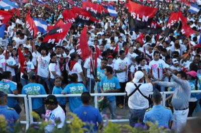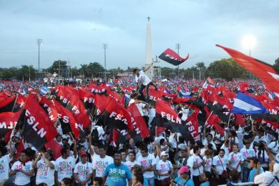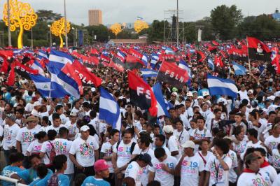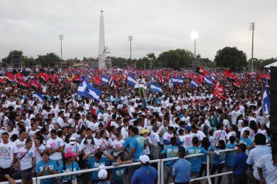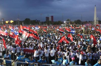 К 18 часам все пространство площади и прилегающих улиц заполнилось людьми с флагами Никарагуа и сандинистов. Вскоре начался торжественный митинг. В ходе его проведения выступили ближайшие соседи и союзники по борьбе за экономическую и политическую независимость стран Латинской Америки. В частности, слово было предоставлено заместителю председателя государственного совета Кубы и президенту Гондураса. Дружно была поддержана речь президента Венесуэлы Николаса Мадуро.