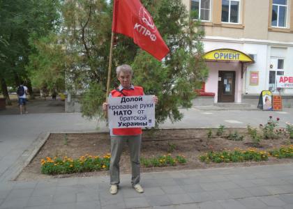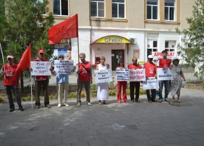 Участники пикета, с помощью агитсредств: «Руки прочь от КПУ!», «Нет фашизму!», «Если вы против фашизма, то вы с нами коммунистами-большевиками!», «Крым-субъект России!», «Долой кровавые руки НАТО от братской Украины!» выразили протест против запрета деятельности Компартии Украины, уничтожения коммунистической идеи и братства народов.