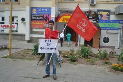 Мы, коммунисты Элистинского местного отделения, как и все коммунисты республики, знаем, к чему приводит фашизм, которому необходимо противодействовать сообща, всем миром. События на Украине стали фактором угрозы существования коммунистического движения. Именно поэтому 22 июля 2014 года на территории ул. Нейман (Центр города) организовали и провели публичное мероприятие в форме пикета, чтобы поддержать Коммунистическую партию Украины и осудить политику правительства Украины.
